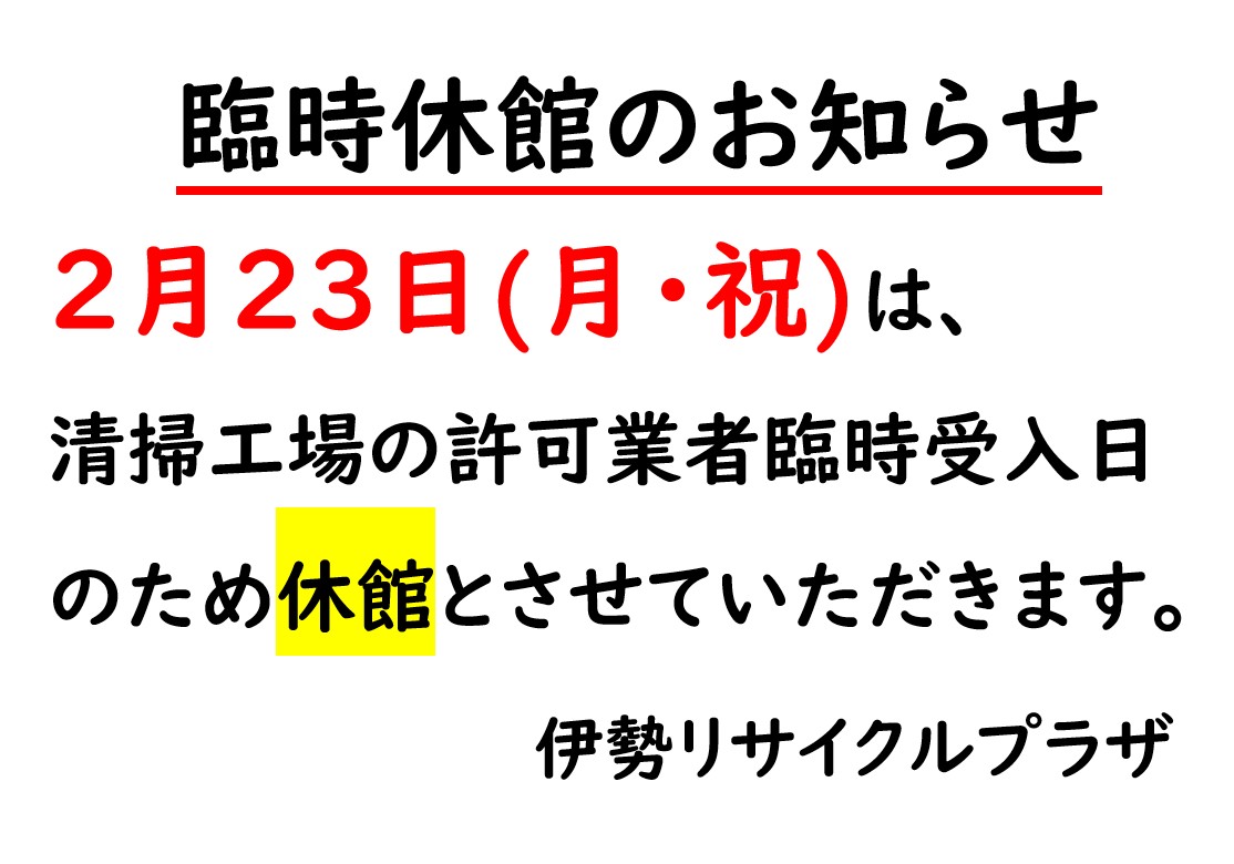 臨時休館のお知らせ臨時