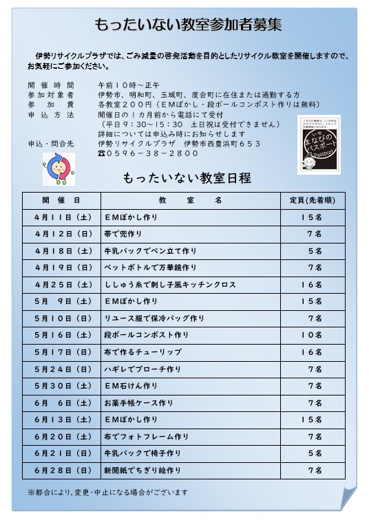 > もったいない教室 4月~6月開催予定